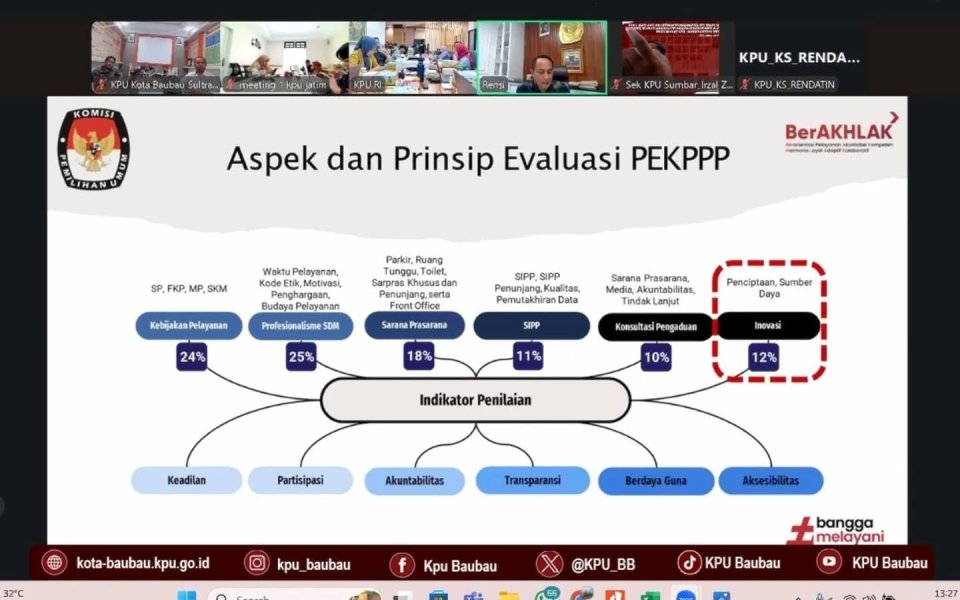 KPU Kota Baubau mengikuti Rapat Sosialisasi Pemantauan dan Evaluasi Kinerja Penyelenggaraan Pemilu (PEKPPP) secara Mandiri Instasional KPU Tahun 2025 yang dilaksanakan secara daring, pada Kamis, (18/09/2025).