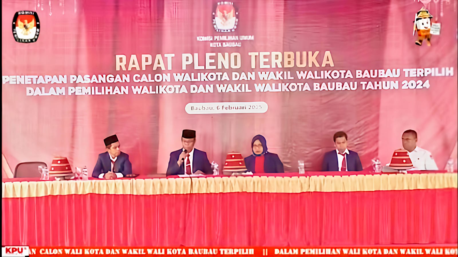 Komisi Pemilihan Umum Kota Baubau menetapkan Pasangan Calon Walikota dan Wakil Walikota Baubau Terpilih, Dalam Pemilihan Walikota dan Wakil Walikota Baubau Tahun 2024, Kamis (6/2/2025).